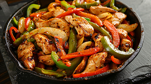 Para preparar Fajitas, añade 1 cucharada de sazonador por cada libra de carne y sofríe por unos minutos. Después, añade agua y cocina a fuego lento por 10 minutos. Incorpora cebolla y ajíes, arma las fajitas y sirve con lechuga, pico de gallo, guacamole, queso, sour